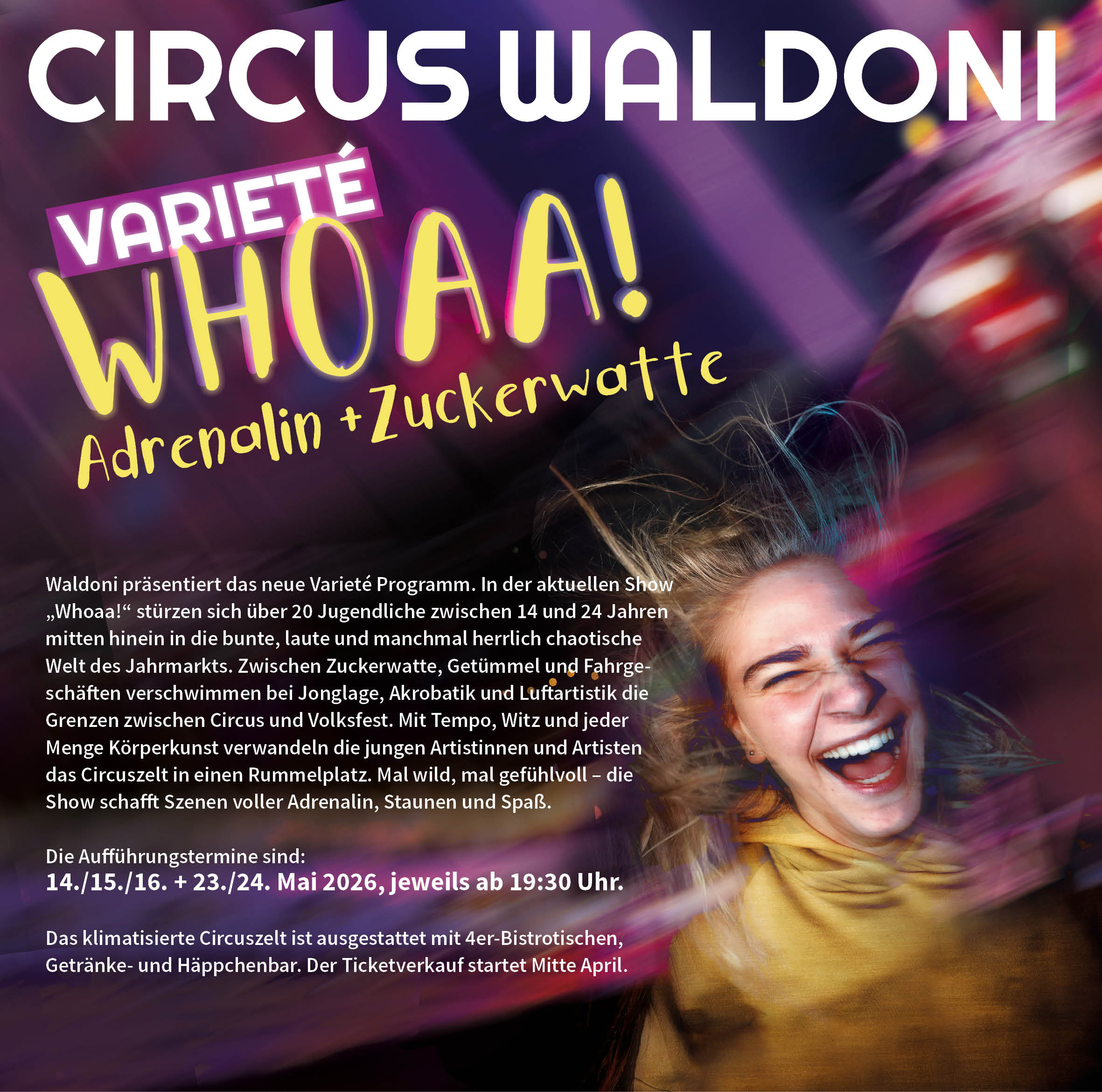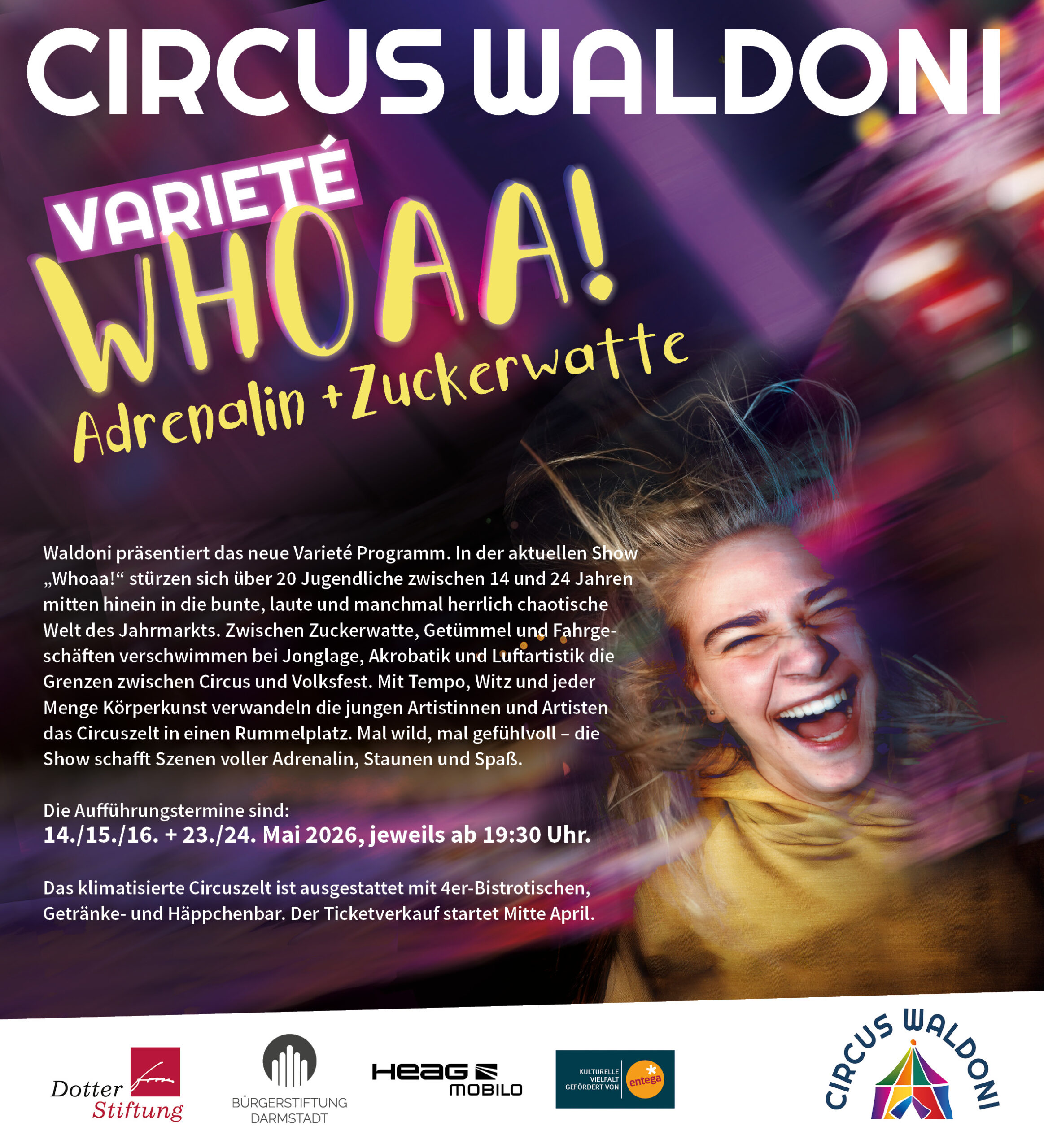 Bei Waldoni geht es um Jonglieren, Akrobatik, Seillaufen, Einradfahren, und noch viel mehr: Nämlich um das Herantasten an eigene, oft ungeahnte Kräfte und Fähigkeiten, um das Entwickeln von Vertrauen, die Entdeckung von schauspielerischen Talenten und das Erleben von Erfolg. Circus hilft, Alltagssituationen besser und bewusster zu meistern. Neben regelmäßigen Circusgruppen bieten wir Ferienkurse, Freizeiten und Events für Jung und Alt. Unsere Bildhauerwerkstatt und regelmäßige Kunstausstellungen beleben unser Projekt, Schulklassen und Schulen ergänzen die bunte Palette. Waldoni ist vielfältig und preisgekrönt.